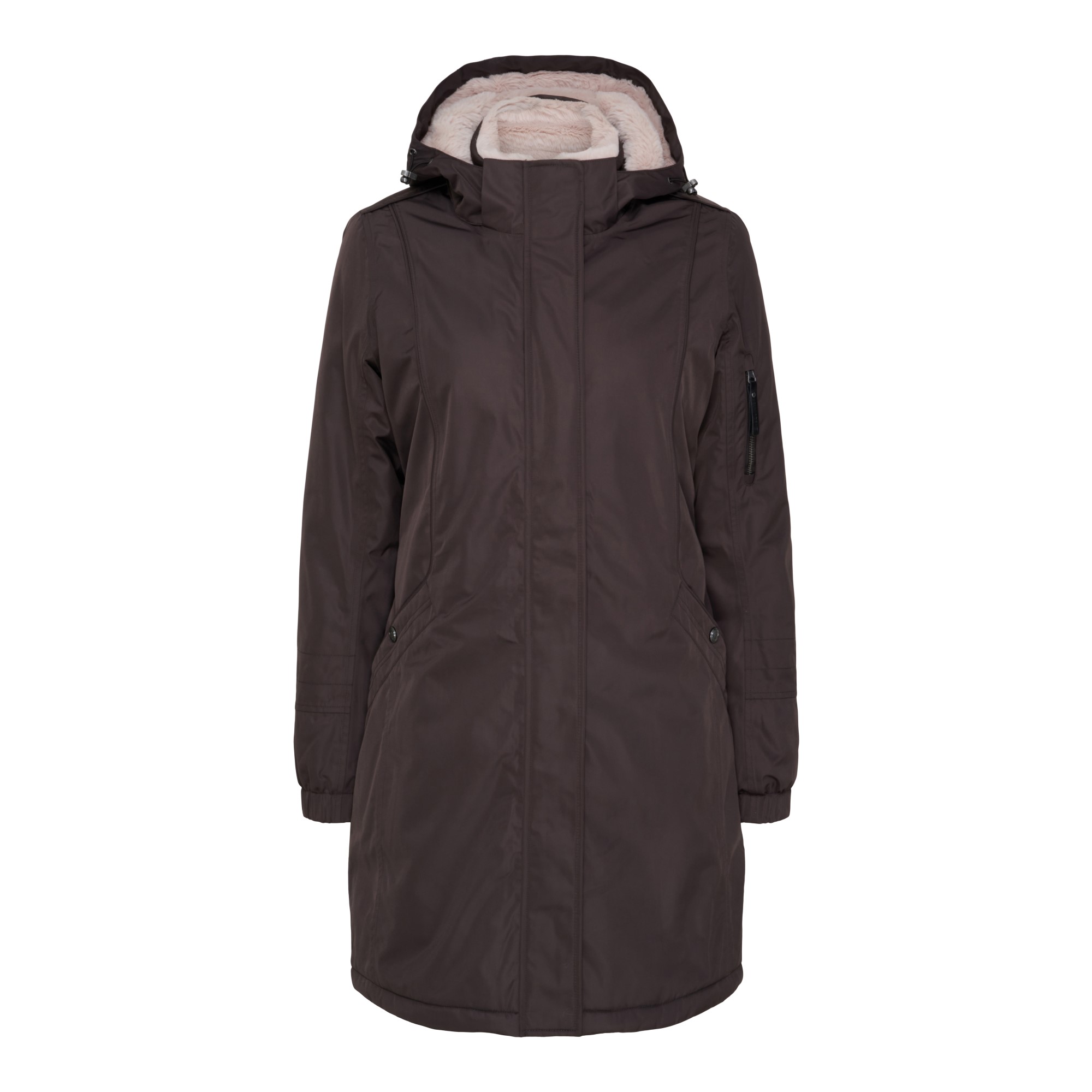 - Detaljer: Imitert pels i hetten, feminine ermer med ruching-effekt, metallisk kant langs glidelåsen, ridespalter med magnetiske trykknapper, 2-veis glidelås foran