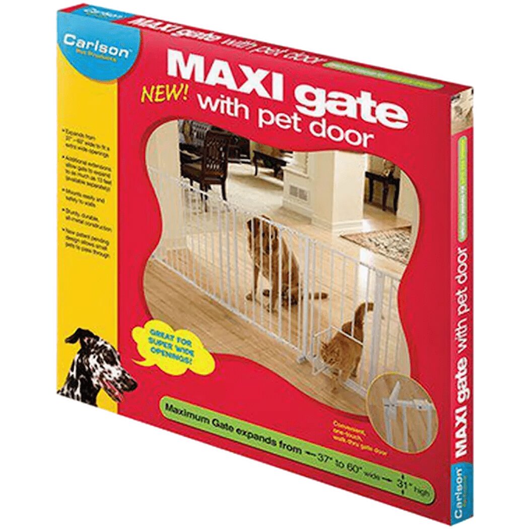 Carlson Maxi Walk-Thru grind er en ekstra bred, solid og fleksibel løsning som kan tilpasses både vanlige og svært store åpninger. Med Walk-Thru-funksjon, smart kattedør og mulighet for utvidelse opptil 396 cm, er den et perfekt valg for hjem med både små og store kjæledyr.