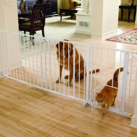 Carlson Maxi Walk-Thru Grind med kattedør – 76 cm høy, bredde 94–152 cm (utvidbar til 396 cm)