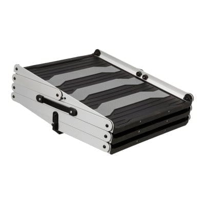 Trappen er laget av solid aluminium og plast, og har anti-skli belegg på trinnene som sikrer godt grep, selv under våte forhold. Dette gjør trappen ideell for kjæledyr med leddproblemer eller andre bevegelsesutfordringer, og du slipper å bekymre deg for å løfte dem inn og ut av bilen. Bruk støtfangerbeskyttelsen for å unngå riper på bilen og for å sikre at trappen står stødig.