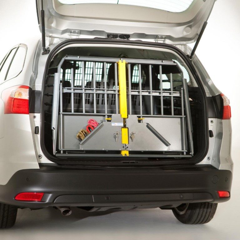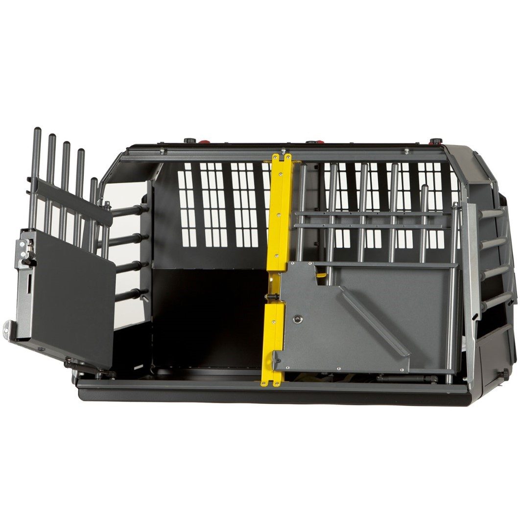 Variocage Double er et av de sikreste og mest praktiske hundeburene på markedet. Hundeburet har en skillevegg som kan flyttes på eller tas ut så det blir plass til én stor hund uten skilleveggen eller til to mindre hunder med skilleveggen. Dybden på dobbeltburet kan justeres mellom oppgitte mål. Med noen enkle håndgrep tilpasses hundeburet akkurat din bil! Variocage Double kommer i flere forskjellige størrelser.