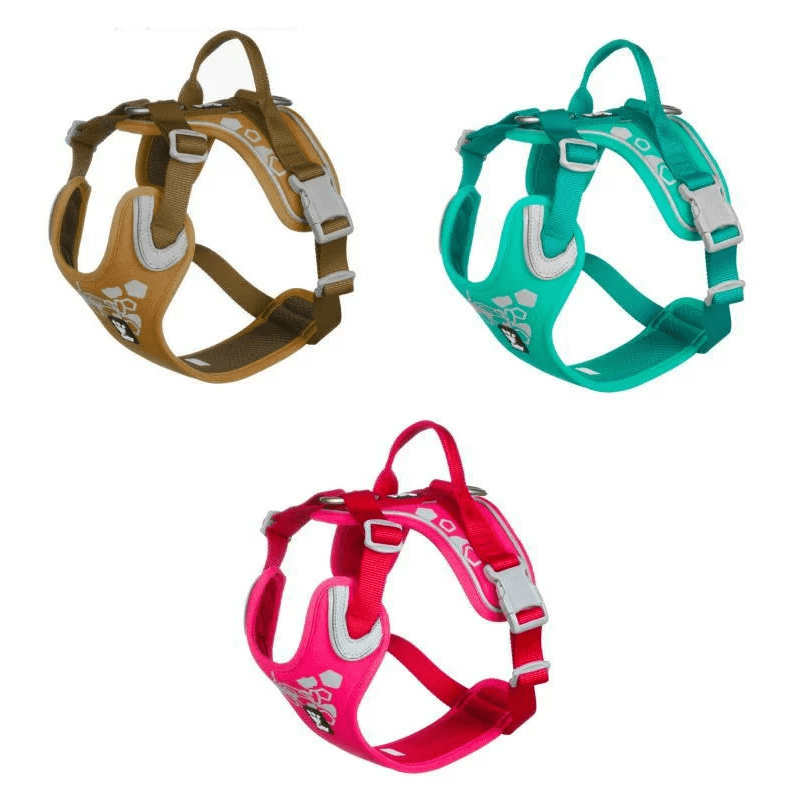 Hurtta Weekend Warrior Harness er en fantastisk hundesele for aktive hunder! Dens ergonomiske design fordeler båndtrykket jevnt over brystet, noe som gir en tilpasset passform. Å ta den på og av er en lek siden du ikke trenger å løfte hundens forbena. Laget med slitesterke materialer og med 3M reflekterende utskrifter, sikrer denne selen at din pelskledde venn forblir synlig, selv under dårlige lysforhold. Det er komfortabelt, trygt og perfekt for de eventyrlystne utfluktene!