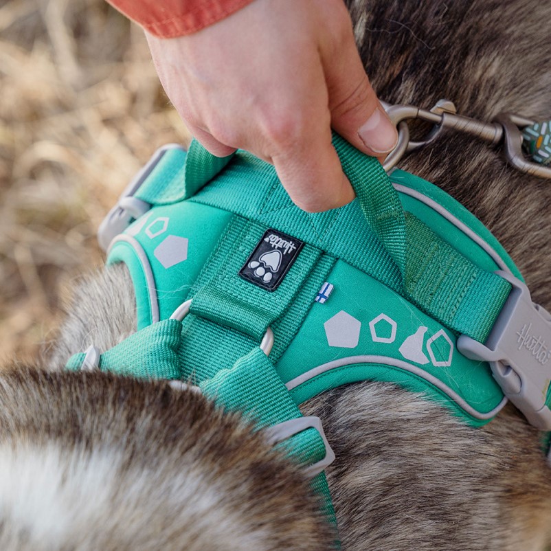 Hurtta Weekend Warrior Harness er utstyrt med store 3M reflekterende trykk og sømmer, som sikrer at din hund er godt synlig, selv i dårlig lys. Dette er avgjørende for sikkerheten på tidlige morgenturer eller kveldsturer når lyset er begrenset. I tillegg er selen utstyrt med et robust håndtak på ryggen, som gir deg ekstra kontroll når det er nødvendig, for eksempel i trafikkerte områder.