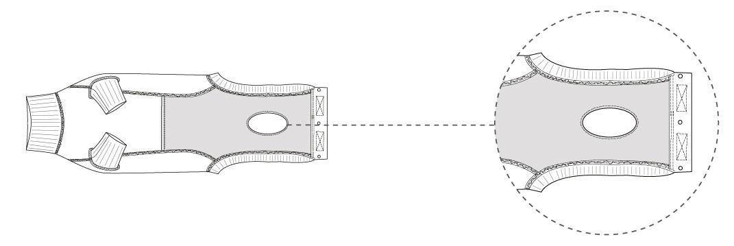 Fest til slutt lukke-flappen med borrelås over ryggen og lukk trykknappene.