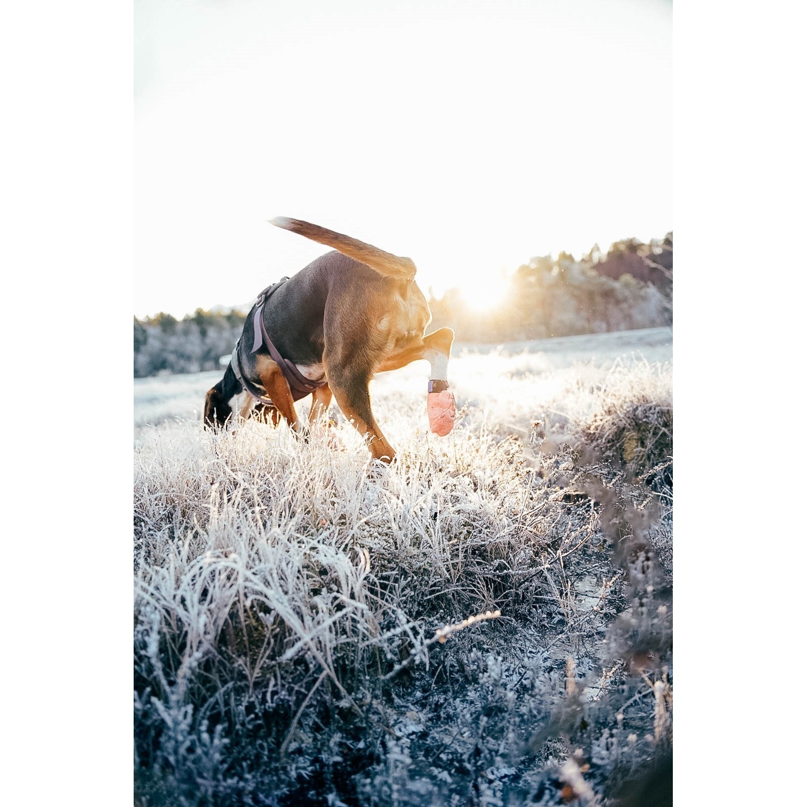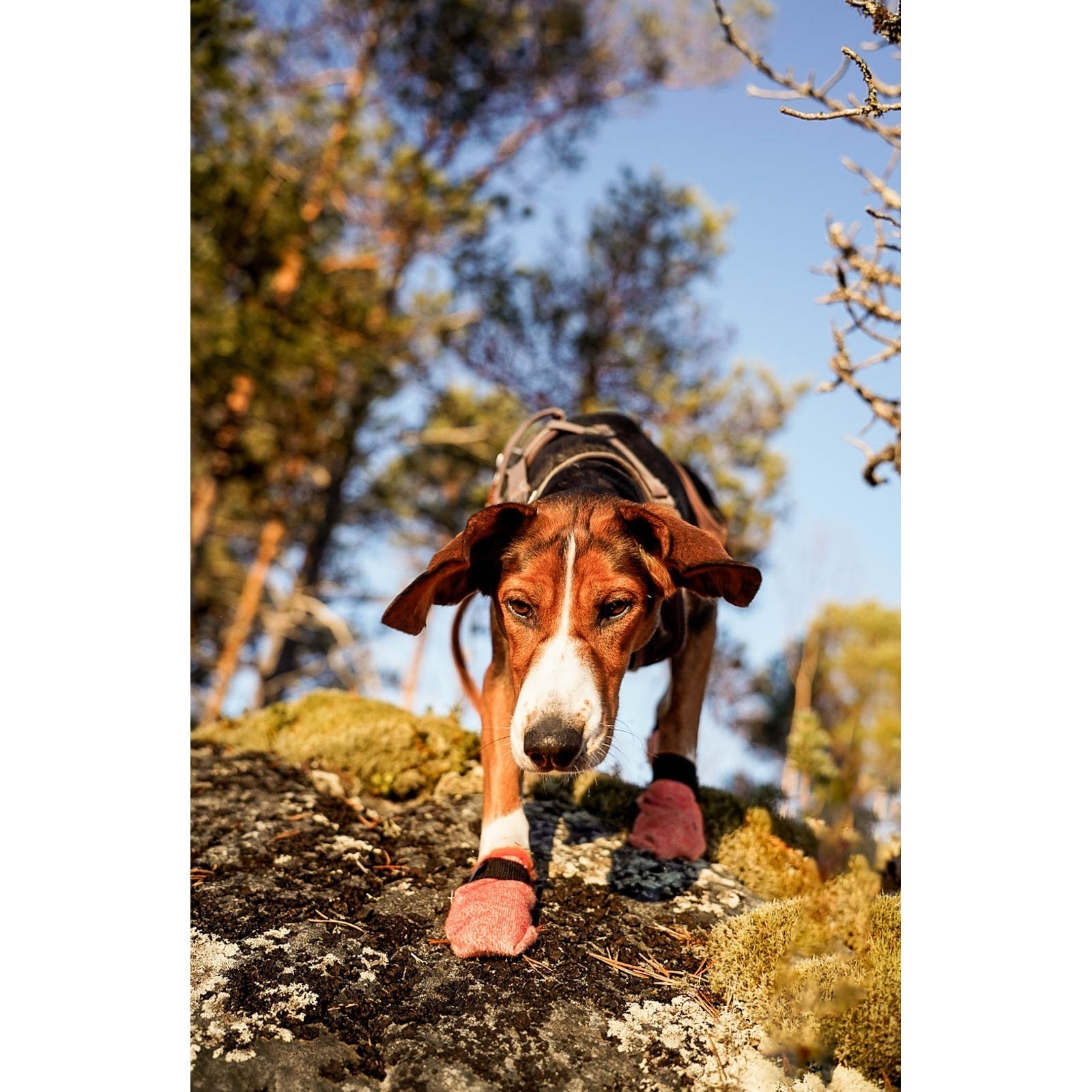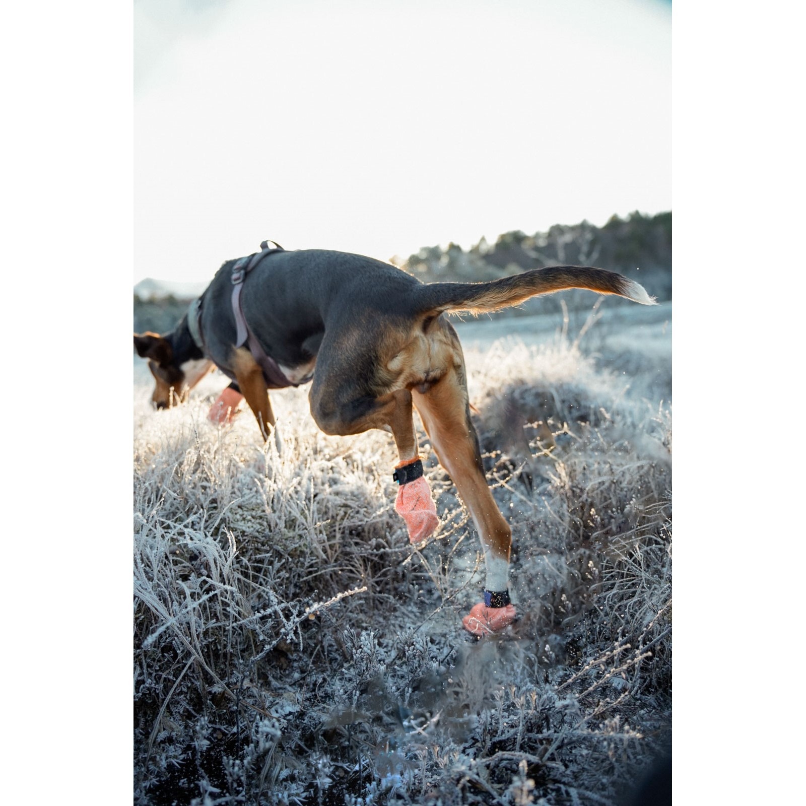 Elastisk borrelås gjør at sokkene sitter godt og er komfortable for hunden å ha på seg.