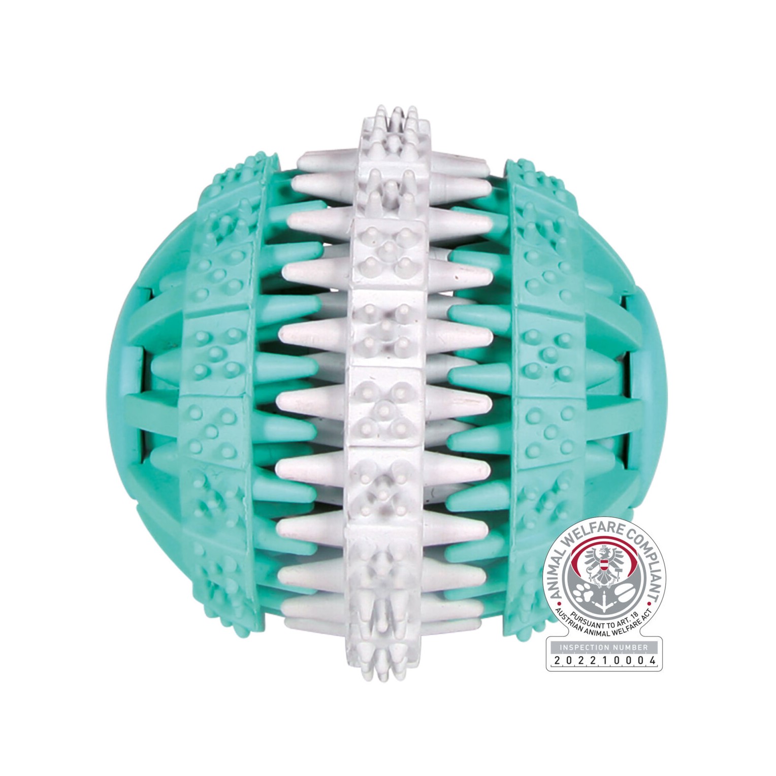 Tannpleien til hunden din trenger ikke alltid å være anstrengende! Med Trixie Denta fun mintfresh ball har din firbeinte en lekeball av robust naturgummi som ikke bare egner seg til kaste- og apporteringsleker, men som også inviterer til herlig tygging på grunn av sin myntesmak.
