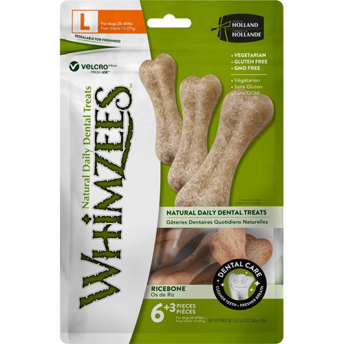 Tyggebein av ris og potetstivelse. Spesielt godt egnet for hunder med sensitiv tarm. Whimzees ristyggebein er et godt alternativ for eksempel når vanlige tyggebein forårsaker løs mage eller allergiske reaksjoner. Det seige materialet renser tennene på en effektiv måte. Inneholder ikke korn med gluten eller animalske biprodukter.