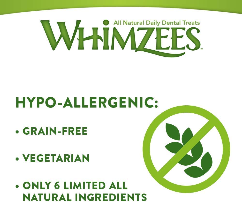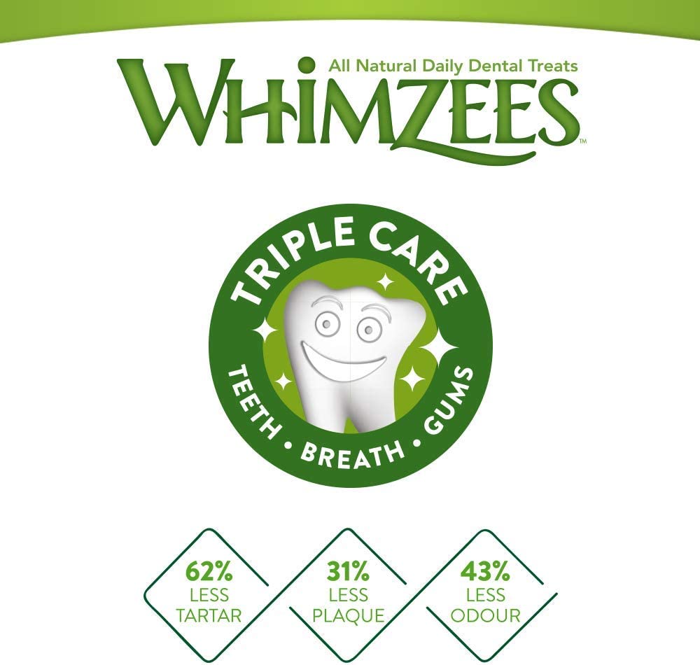 Whimzees er et lettfordøyelig tanntygg med lavt fettinnhold. DentalSticks bidrar til å forhindre dannelse av tannstein og plakk. Potetbasert, vegetabilsk tyggebein uten hvete, inneholder ingen kunstige tilsetningsstoffer, farger, gluten, GMO eller kjøtt. WHIMZEES ® Stix All Natural Grain Free Dental Dog Treats