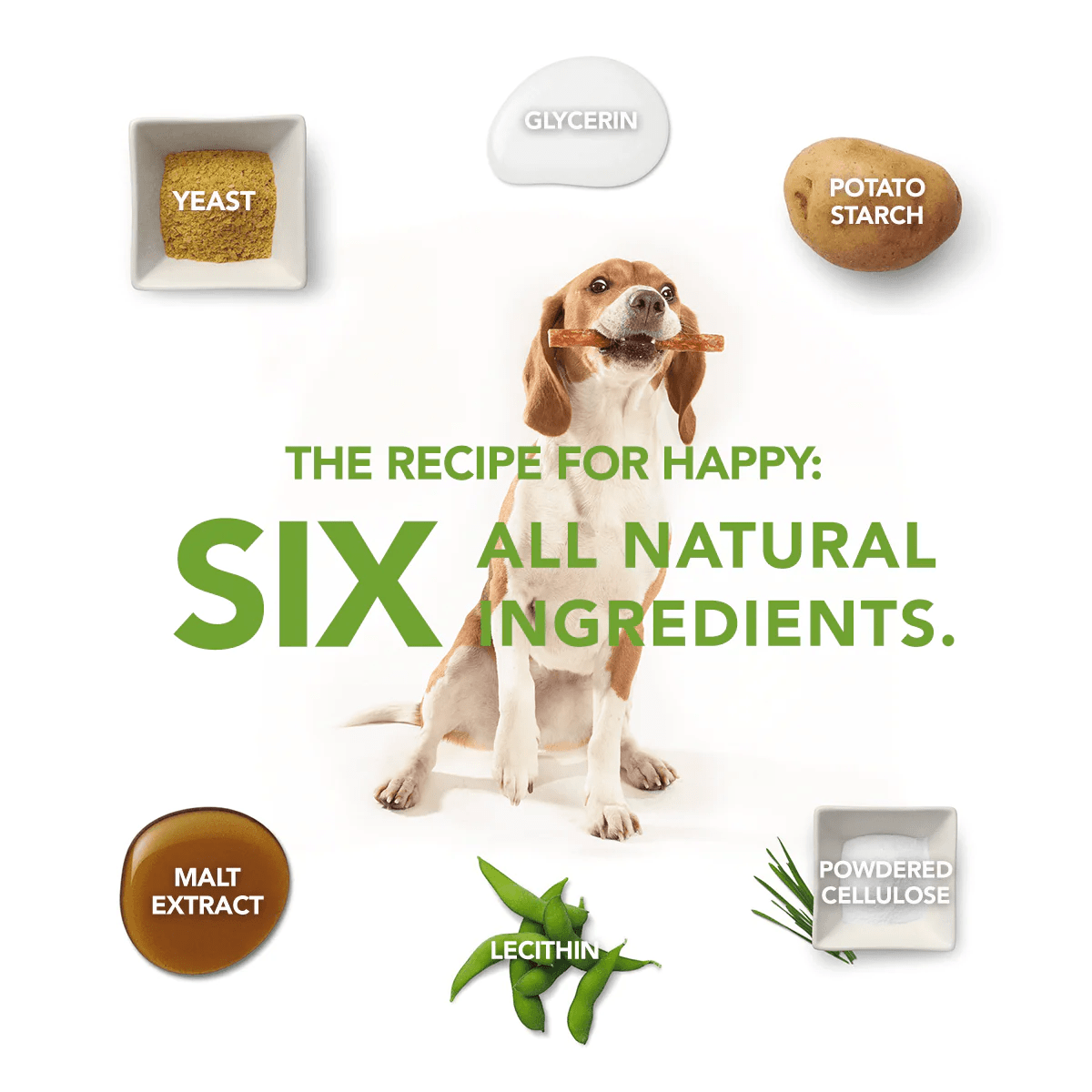 Whimzees har 6 naturlige, funksjonelle ingredienser og ingen kunstige tilsetningsstoffer, farger, smaker, konserveringsmidler, GMO, gluten eller kjøtt. I tillegg har de høyt fiberinnhold og lavt innhold av kalorier og sukker.