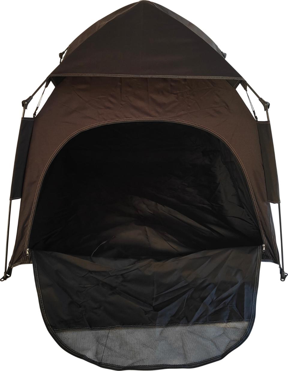 125 x 120 x 105 cm (Merk! Dette er et lite og lavt telt som passer til å skjerme kjæledyr i – det blir i minste laget til voksne mennesker)