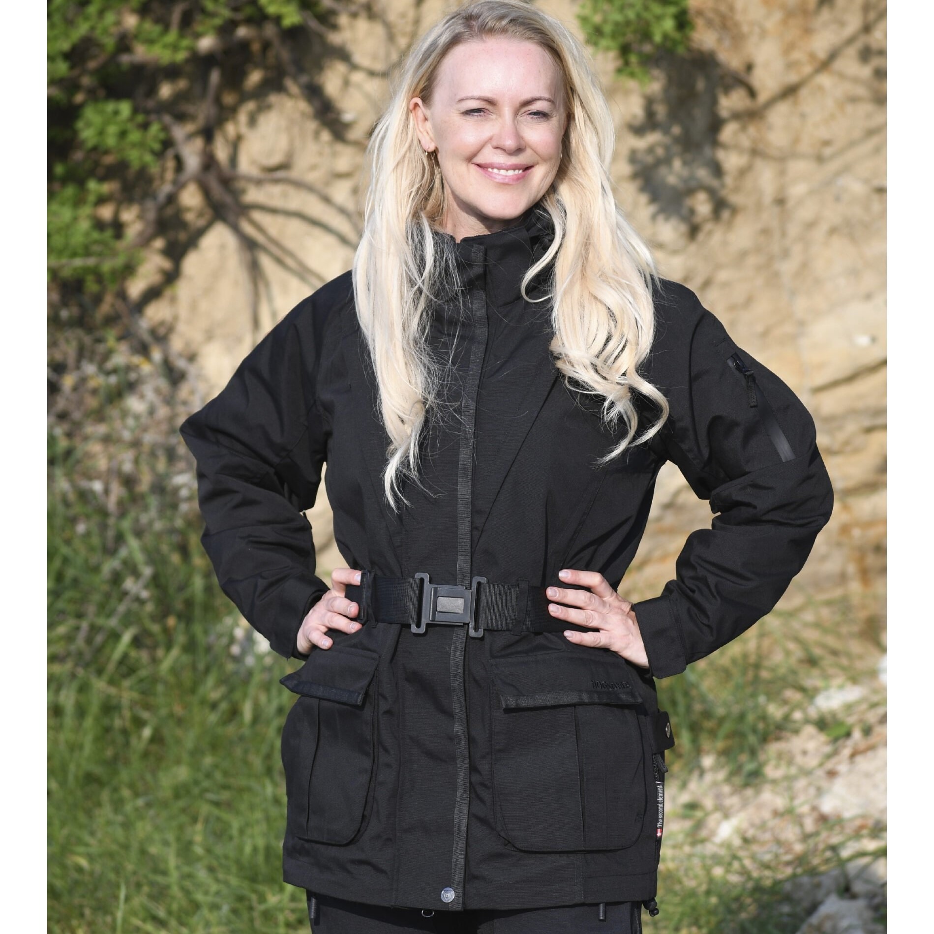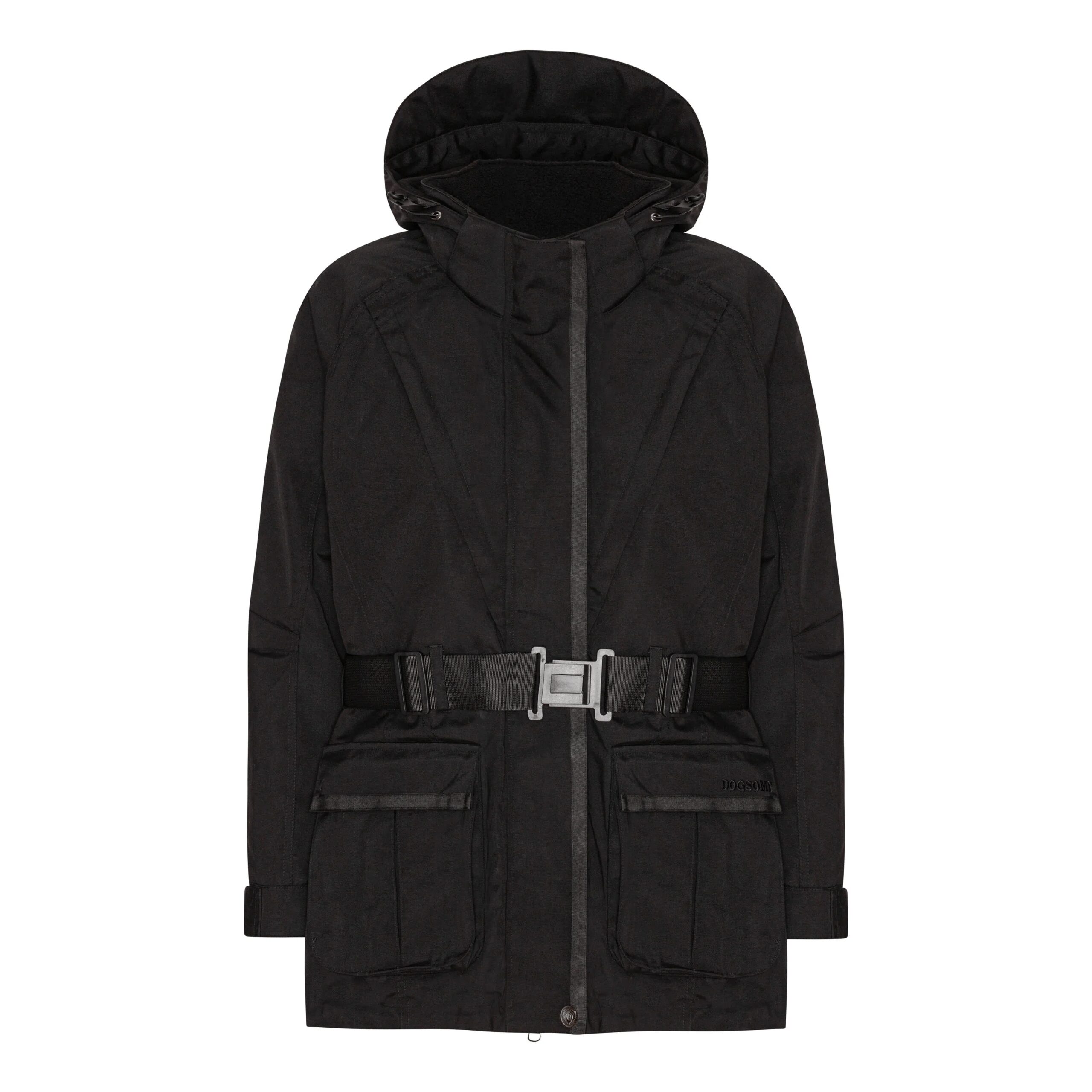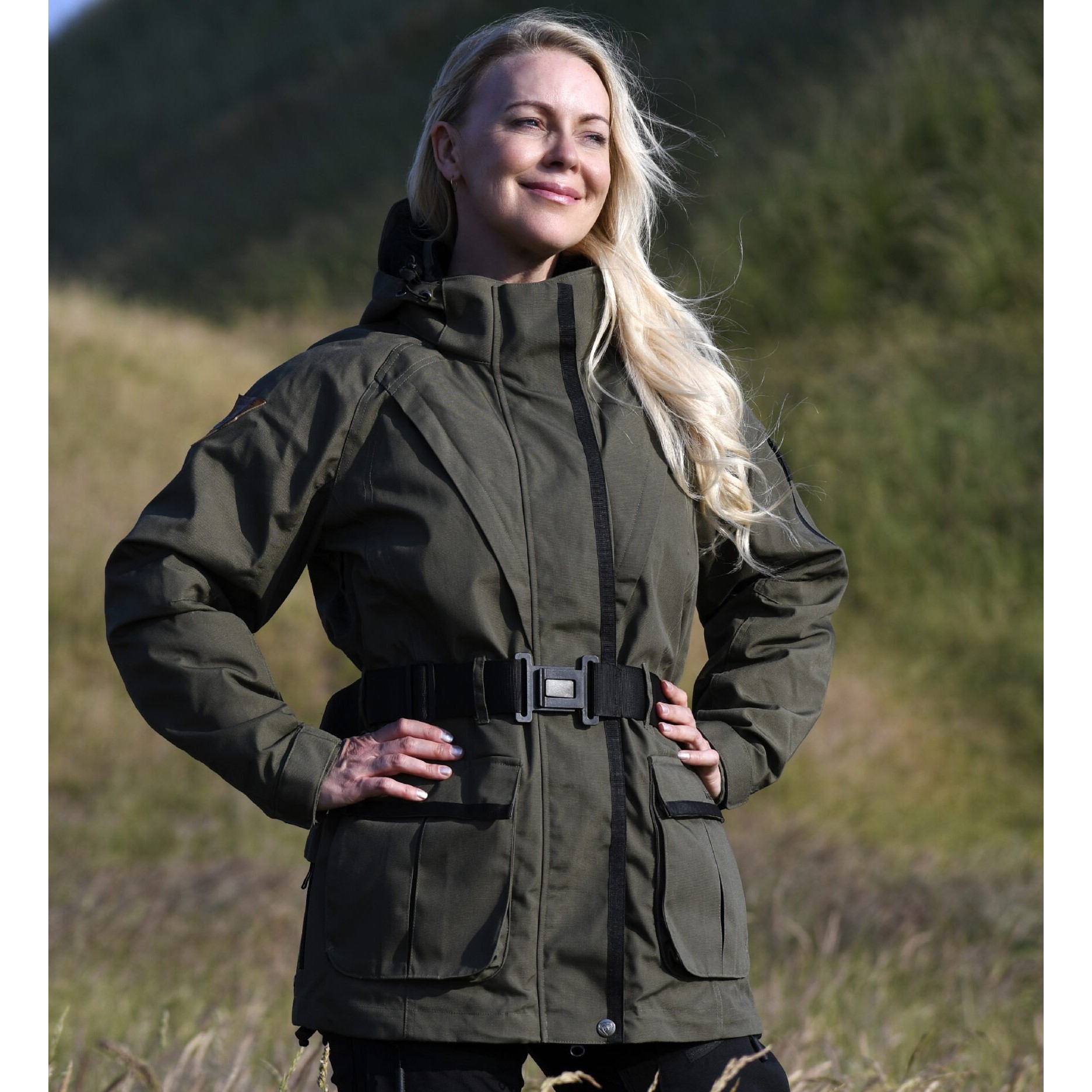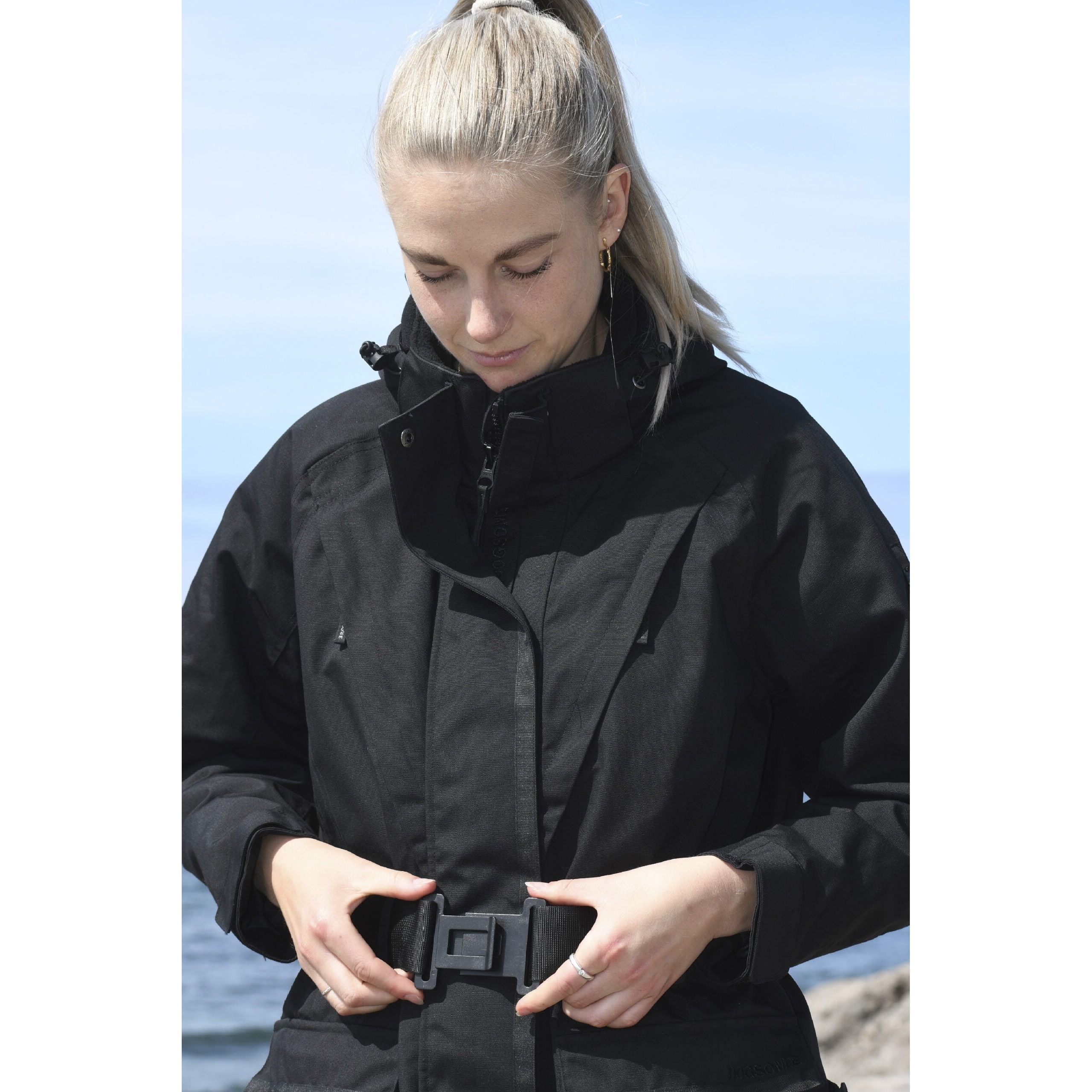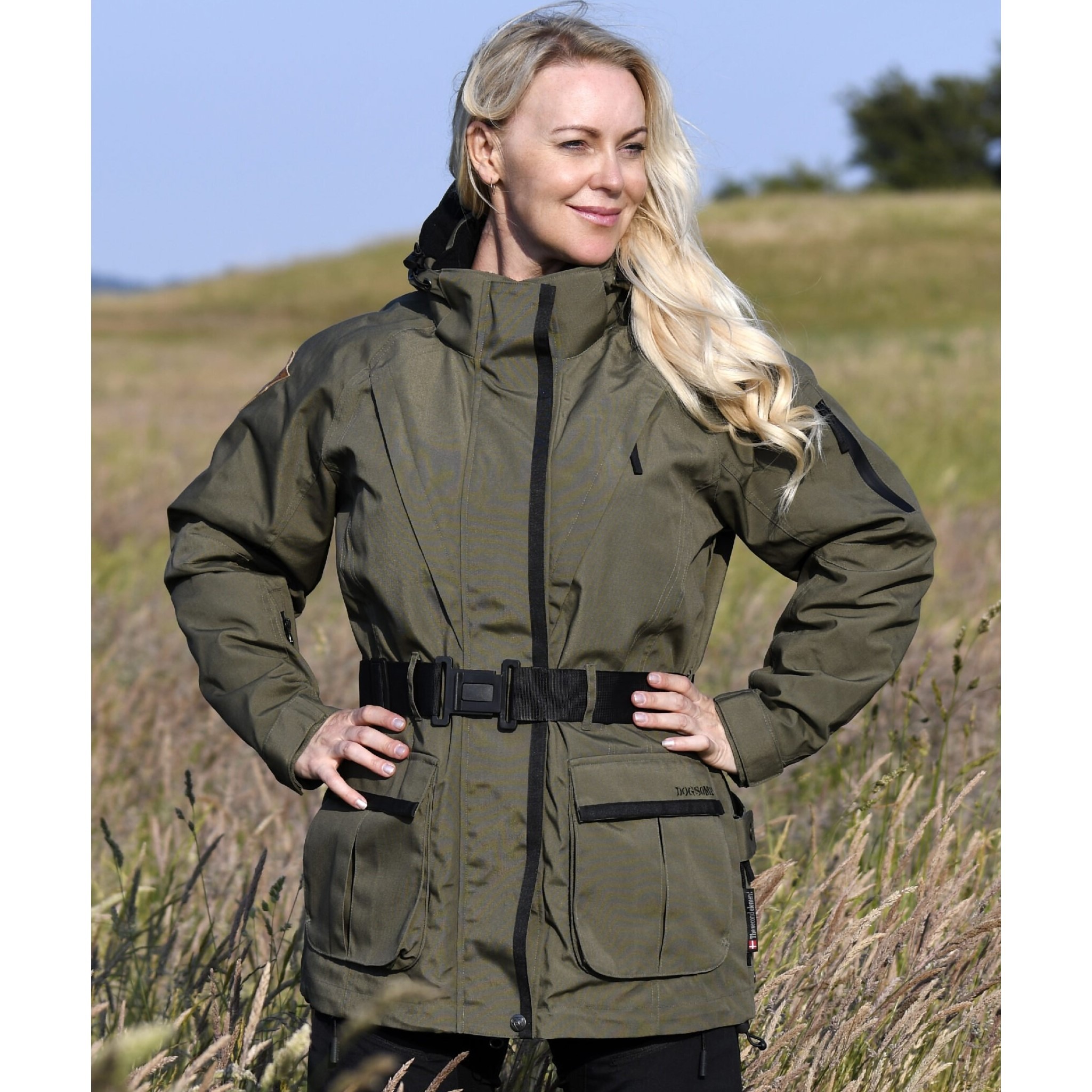 - Det er et justerbart og avtagbart belte på denne damejakken.