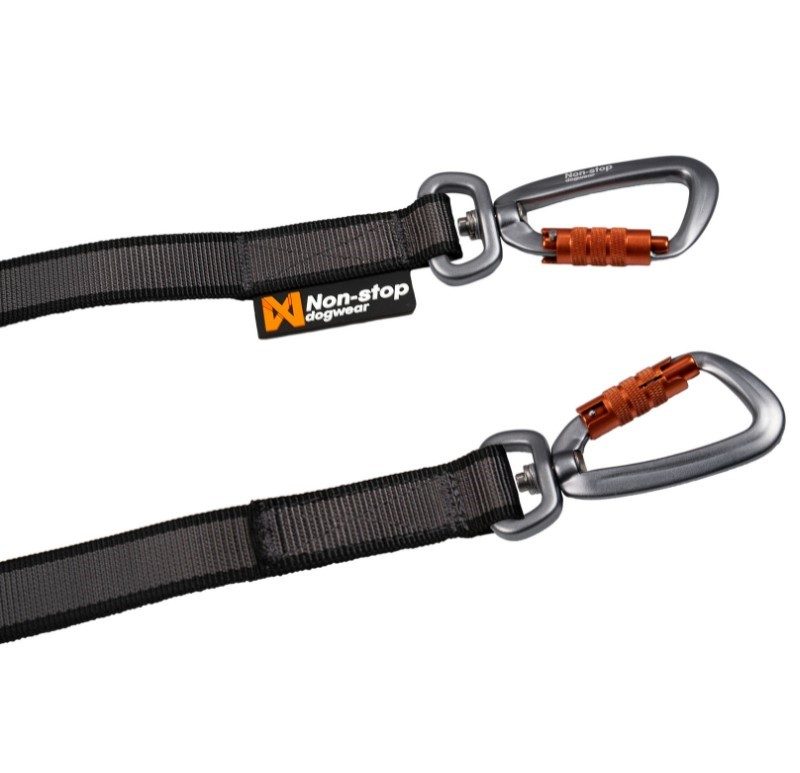 Touring double kommer i to forskjellige størrelser; Small med lette karabinkroker i aluminium og Medium med Twistlock karabinkroker som låser seg automatisk og sikrer at hundene ikke kommer seg løs.