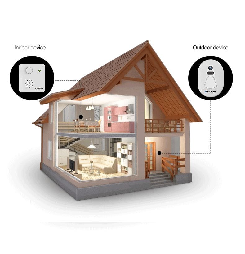 | Outdoor unit specs | Picture resolution:480×272 Picture format:JPEG Image sensor:2 MP 1/4 inch OV CMOS Lens:80°, F2.8 (aperture) Transmission mode:2.4G RF Transmission distance:30 m Night vision mode:Support (1 LED light) Key-press:1 button (only for photograph) Power supply:2PCS AAA battery (Series circuit) Microphone:N/A Speaker:buzzer Color:White Installation:3M glue or Screw fix (2 screws) Alarm system (burglar):Support |