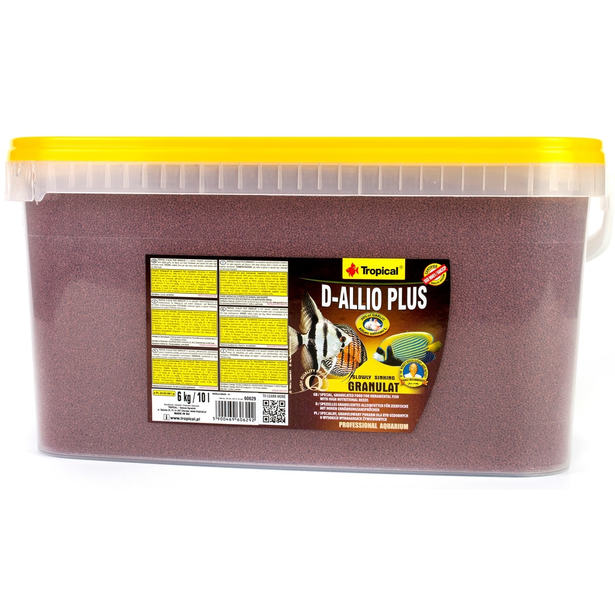 Tropical D-Allio Plus er en spesiell, komplett, flakfôr tilsatt hvitløk, for diskos og annen ferskvanns- og marinfisk med høye ernæringsbehov. Denne spesielle maten tilbyr fordelen av de lenge kjente og verdsatte naturlige egenskapene til hvitløk (Allium sativum L.). Tropical D-Allio Plus er produsert av utvalgte naturlige komponenter, som inneholder vitaminer, mineralsalter og sporstoffer. Tilsetning av zeolitt fremmer et sunt fordøyelsessystem og frigjøring av giftstoffer fra fiskens kropper.